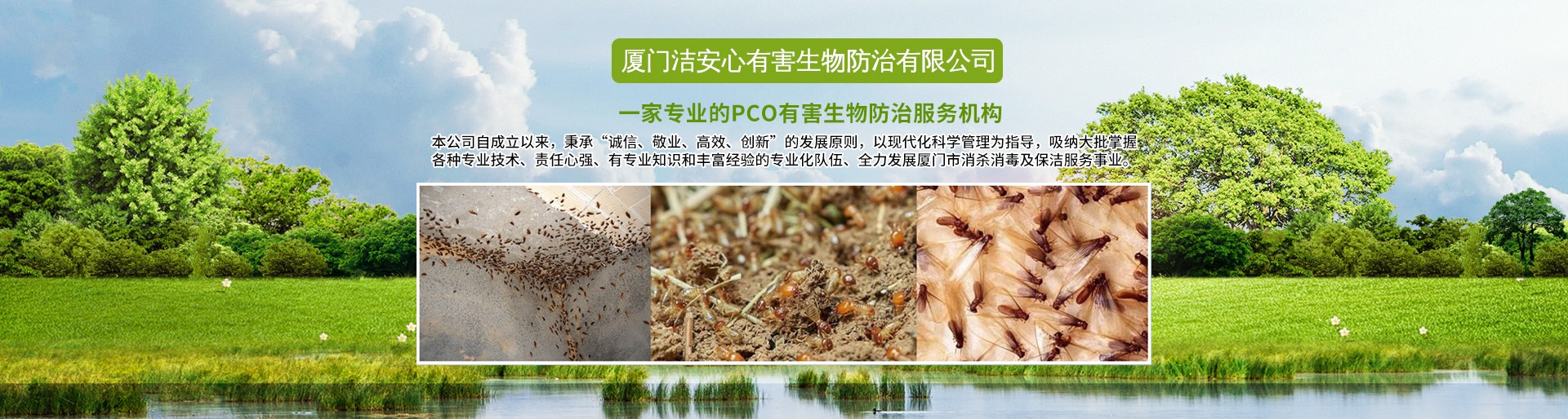廈門潔安心有害生物防治有限公司成立于2020年是一家專業的PCO有害生物防治服務機構,是經廈門市工商局注冊登記、廈門市白蟻防治管理所、PCO協會批準的城市害蟲綜合治理公司,專業殺臭蟲、殺白蟻、殺蟲、滅老鼠的公司,是集廈門白蟻防治、廈門殺蟲、滅鼠滅四害、廈門殺臭蟲、廈門殺白蟻、廈門滅蟑螂治理銷售于一體的大型專業廈門有害生物環保服務公司。主要從事新建、擴建、改建、裝飾裝修單位建筑物的白蟻防治和白蟻預防工程,同時從事工廠、酒店、企事業單位、住宅小區和家庭的”四害”滅治和白蟻防治服務,長期向各類型客戶提供廈門白蟻防治、廈門殺蟲、滅四害,廈門殺臭蟲、廈門殺白蟻、廈門滅鼠等優質服務。